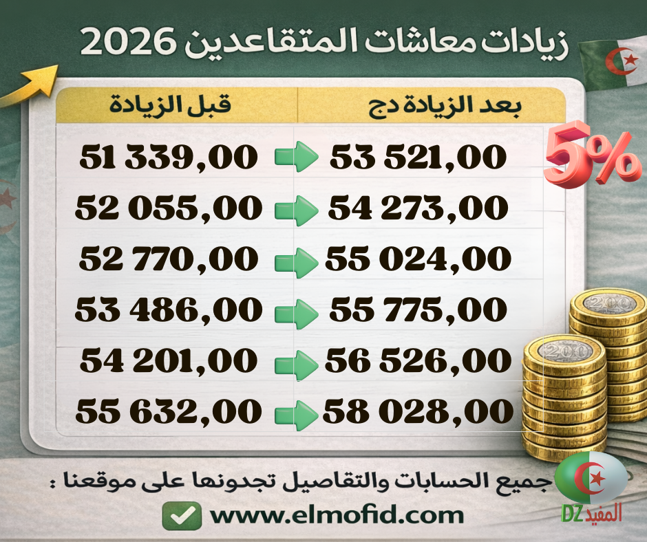 حسابات زيادة معاشات المتقاعدين من 50.000 إلى 60.000 دج – 2026