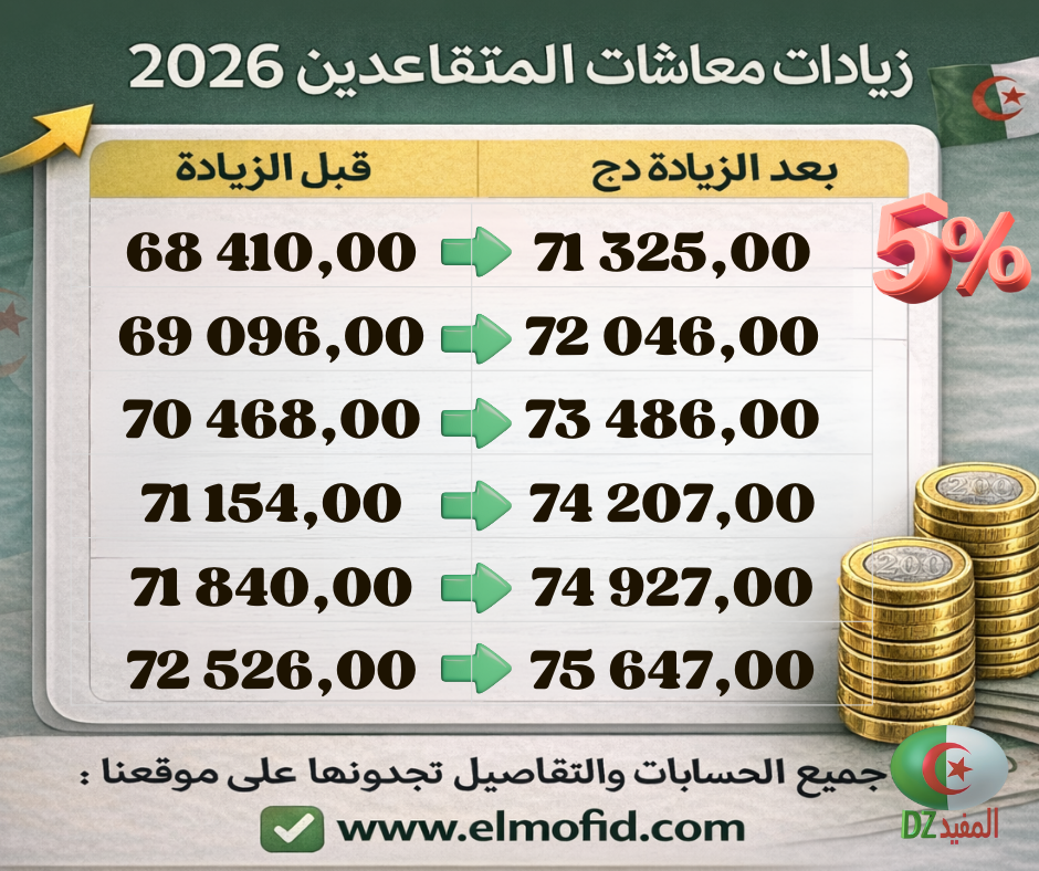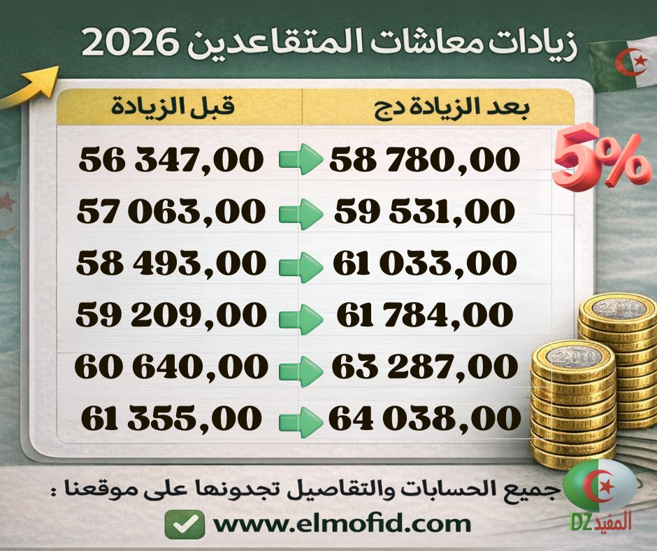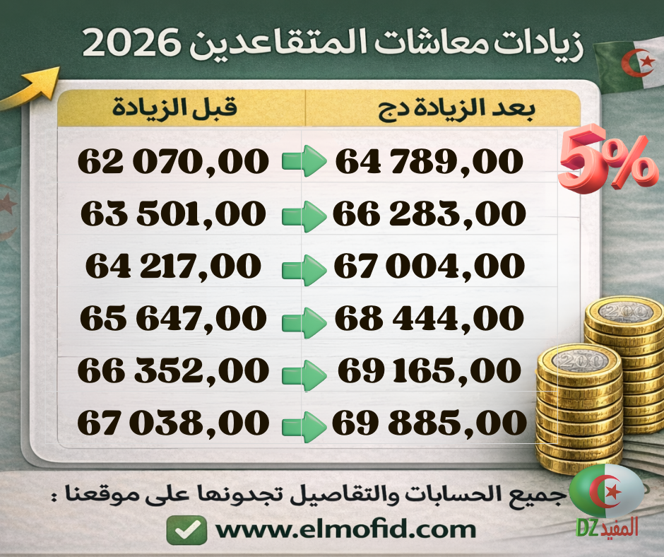 حسابات زيادة معاشات المتقاعدين من 60.000 إلى 70.000 دج – 2026